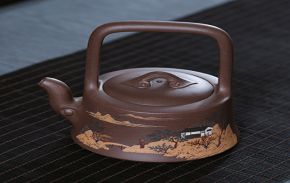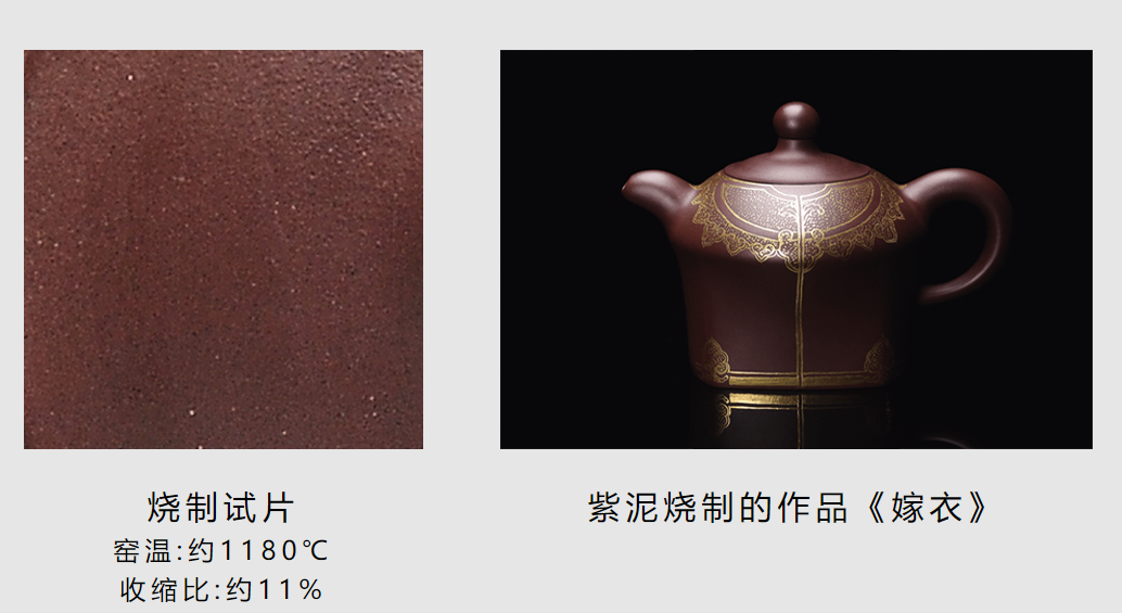 產于黃龍山四號礦井,為較常見之典型紫砂泥;良者寡,而劣者多,呈紫棕色,玩家慣呼其為“黑紫泥”,為市場最廣泛接受的泥料之一。礦脈里鐵質成份較高泥料內所含顆粒較大,結構疏松,器身明顯成雙氣孔結構,空氣對流順暢氣孔對流較好;泥色成熟穩重、端莊肅穆。作品大小皆宜,呈棕紫色調,能安定心靈,親和力甚佳。